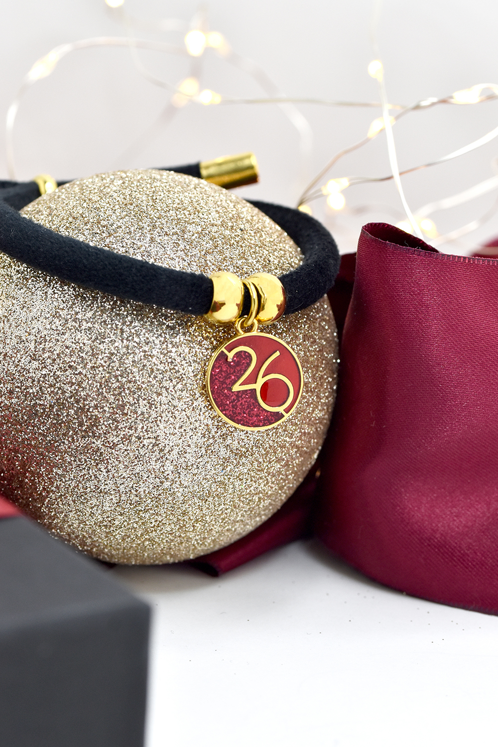 Γούρι 2026 βραχιόλι με κόκκινο σμάλτο & μαύρο βελούδινο κορδόνι