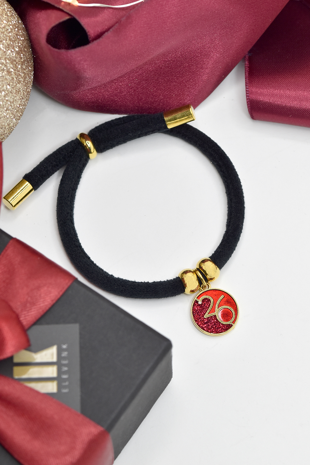 Ένα βραχιόλι γούρι του 2026 με κρεμαστό επισμαλτωμένο στοιχείο και μαύρο βελούδινο κορδόνι -ένα διαχρονικό σύμβολο προστασίας, δύναμης και καλής τύχης για τη νέα χρονιά.