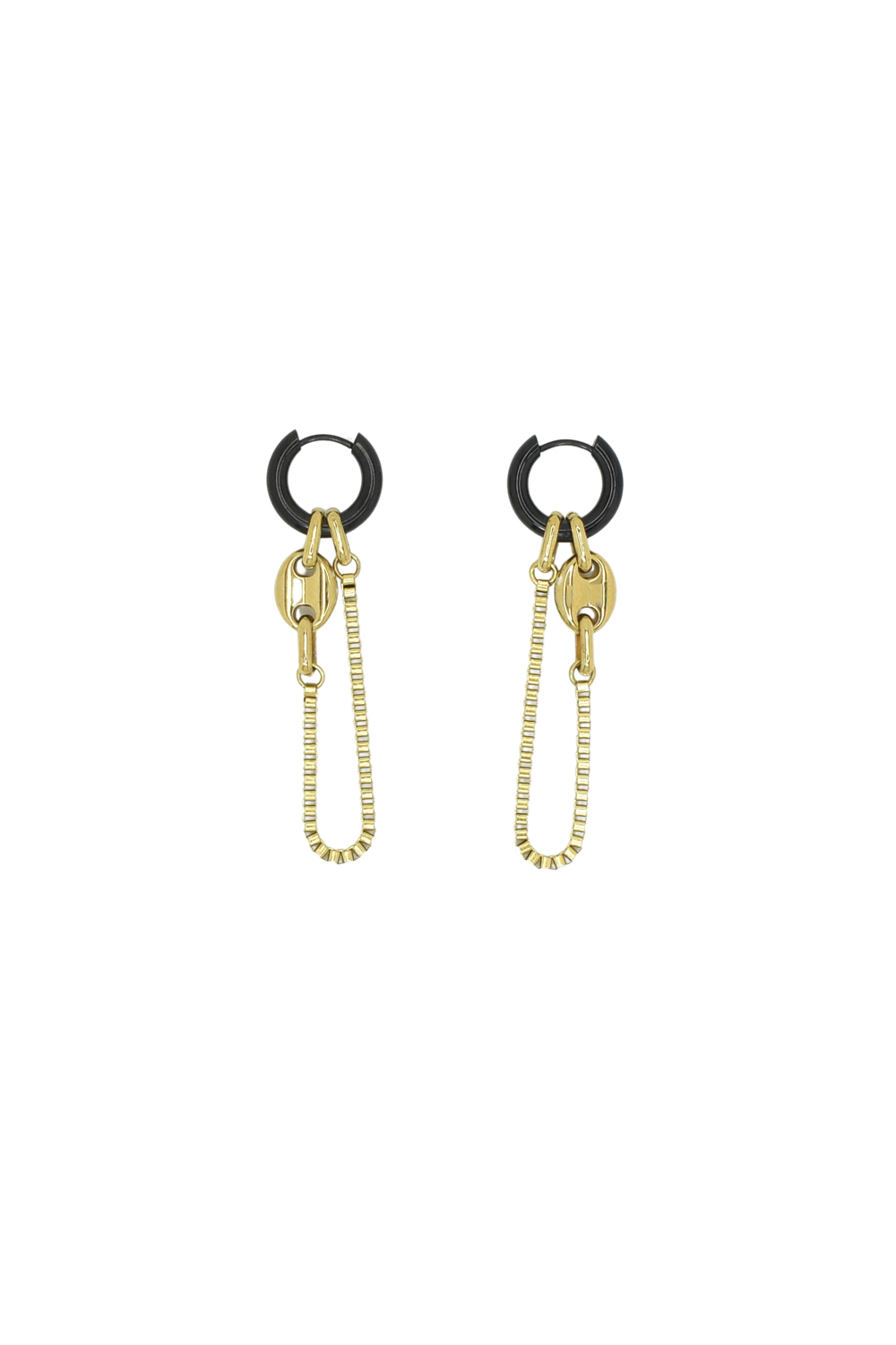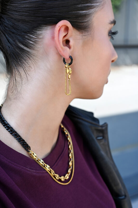 LINK – Γυναικεία σκουλαρίκια σε διχρωμία με μαύρο κρίκο & διπλή χρυσή αλυσίδα