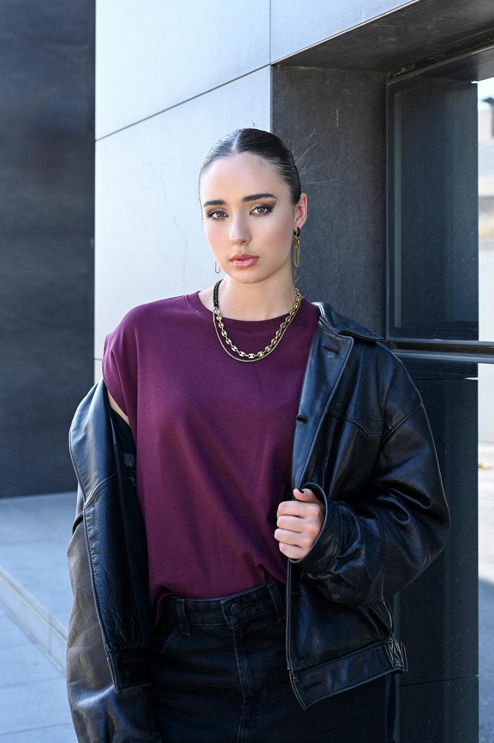 Ο μαύρος κρίκος συνδυάζεται με διπλή χρυσή αλυσίδα διαφορετικής υφής, δημιουργώντας ένα εκλεπτυσμένο layering effect με καθαρή γραμμή και διακριτική κίνηση. Το αποτέλεσμα είναι σύγχρονο, κομψό και ευέλικτο, χωρίς υπερβολές.