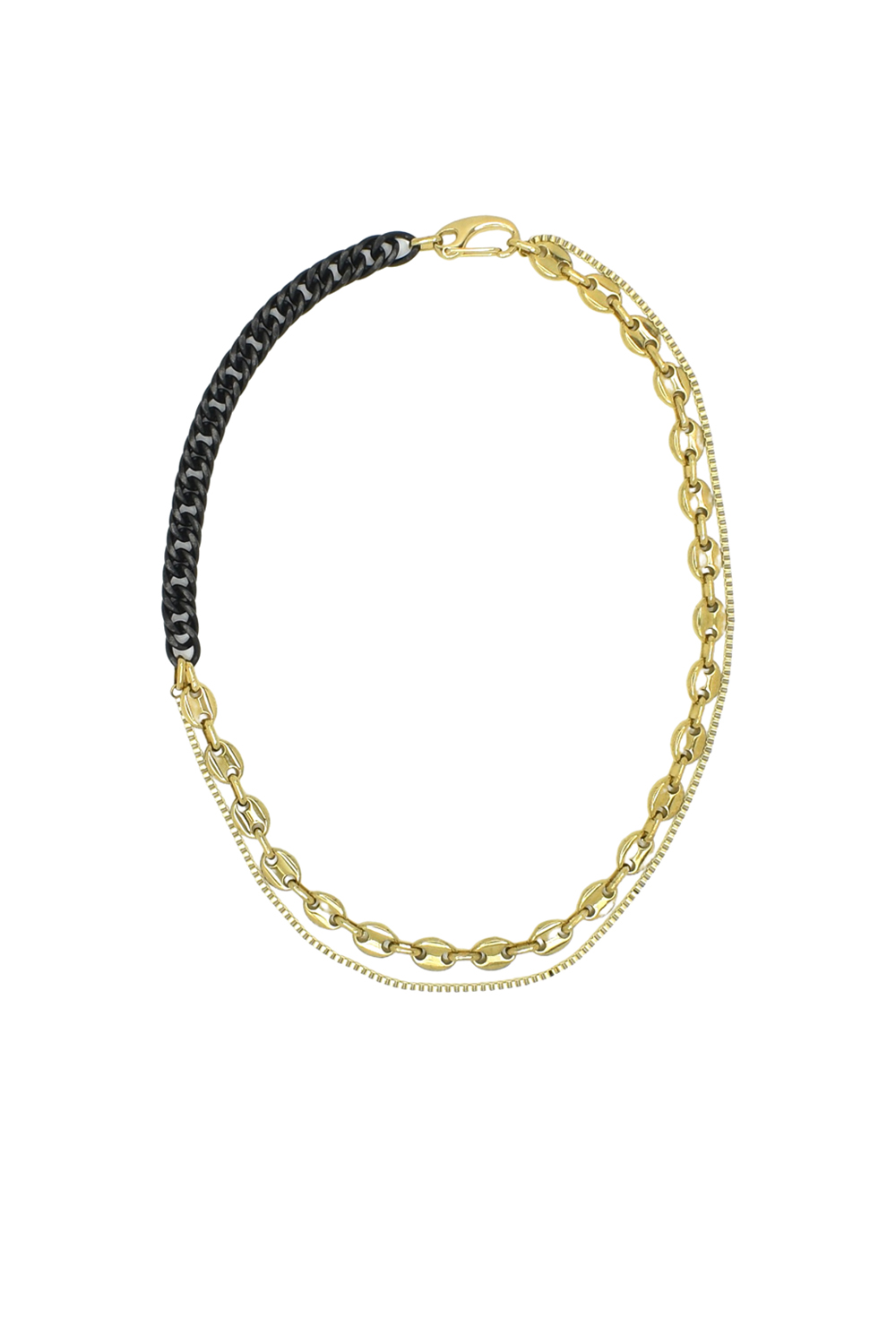 LINK – Γυναικείο κολιέ σε διχρωμία με μαύρη & διπλή χρυσή αλυσίδα