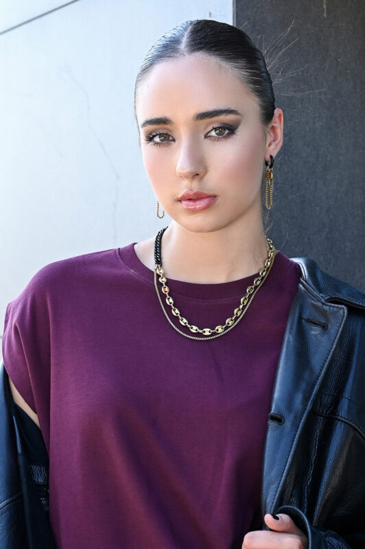 Η ασύμμετρη σύνθεσή του — με μαύρη αλυσίδα στη μία πλευρά και διπλή χρυσή αλυσίδα στην άλλη — δημιουργεί ένα εκλεπτυσμένο layering effect με καθαρή γραμμή και στυλιστική ισορροπία.