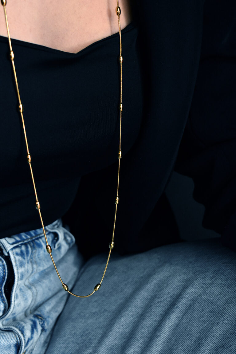 Φοριέται μακρύ για ένα clean, minimal αποτέλεσμα ή διπλό για πιο έντονο layering, προσθέτοντας ακριβώς τη σωστή δόση στυλ σε casual ή πιο κομψά outfit.