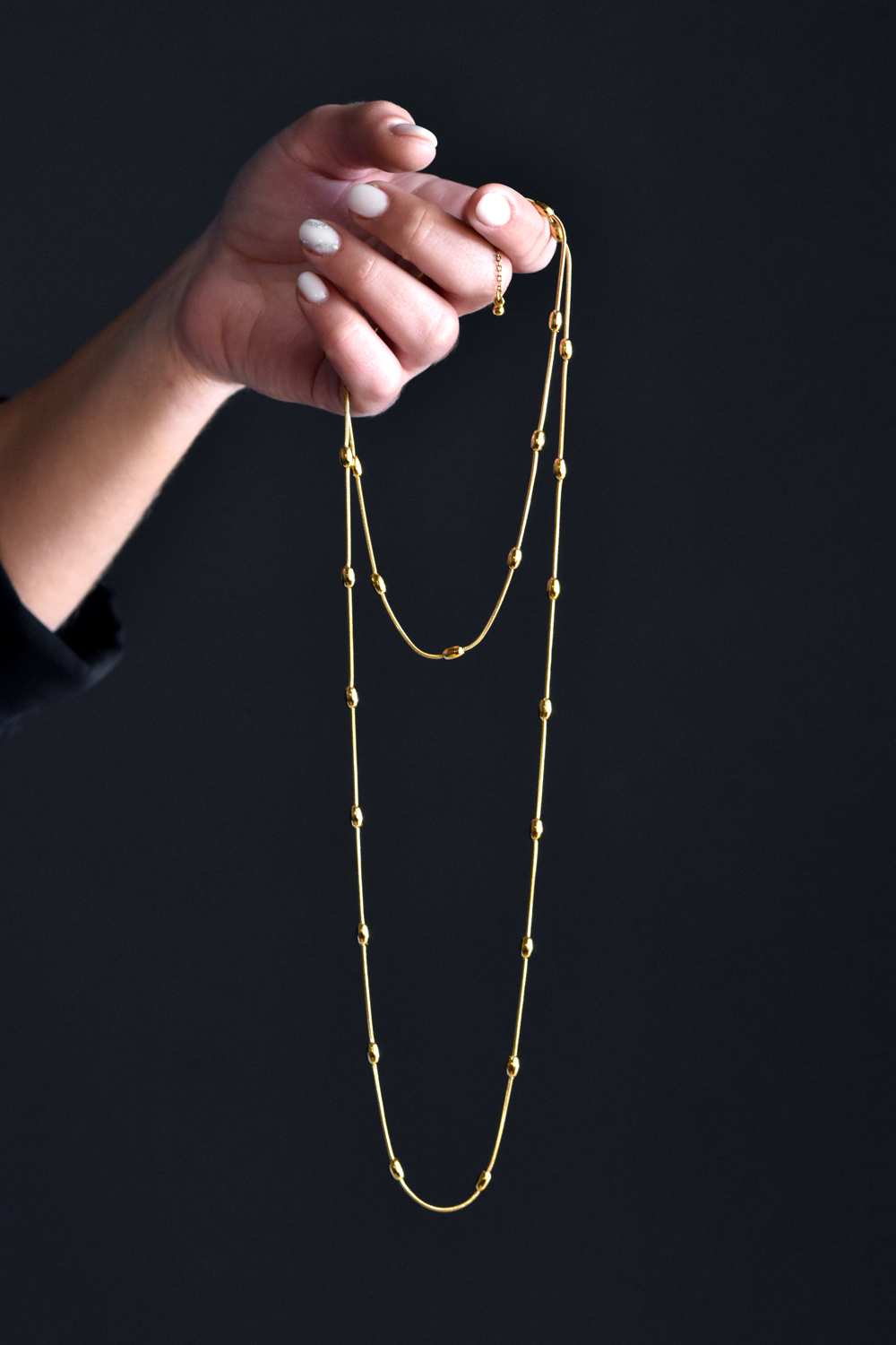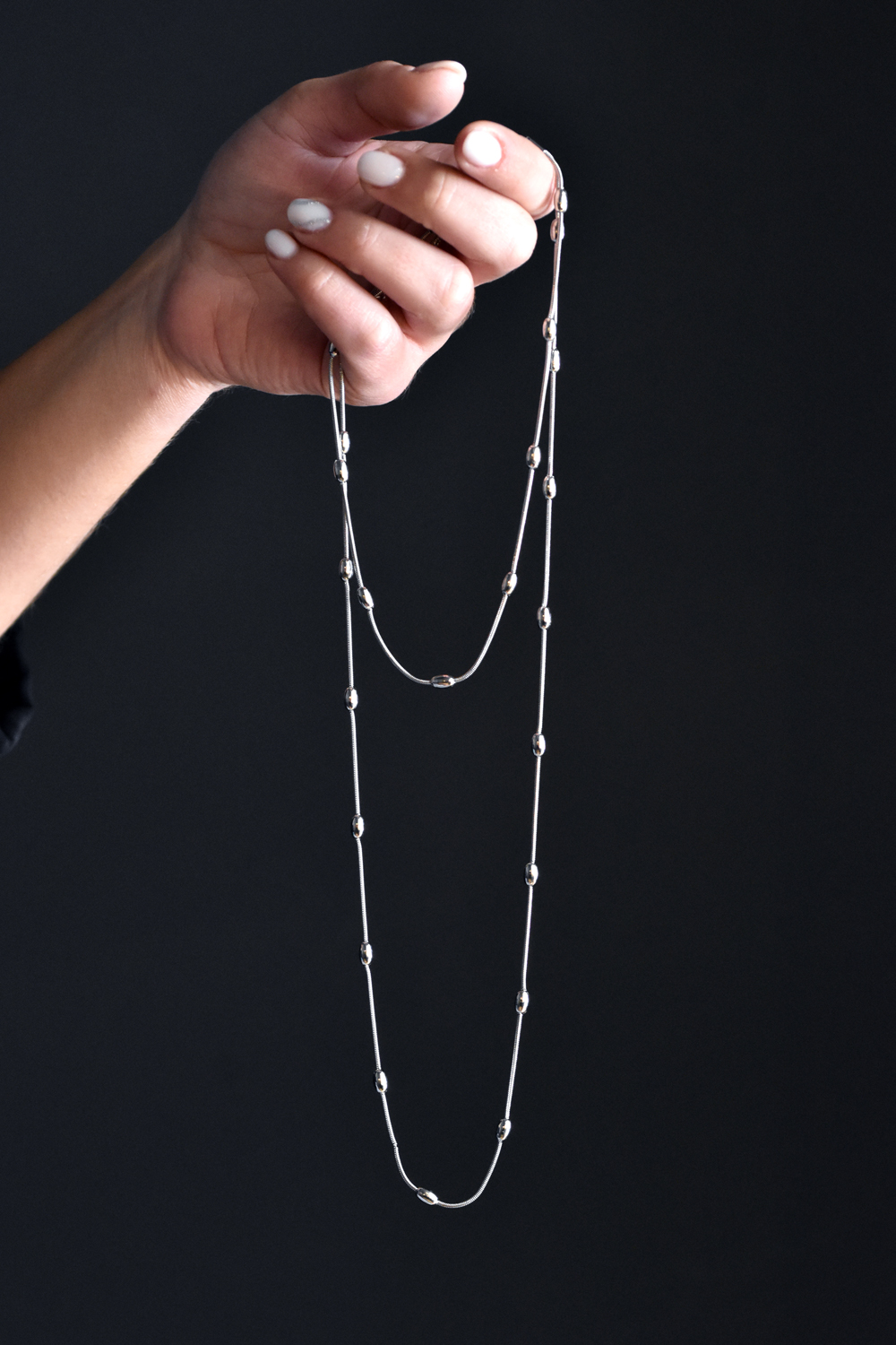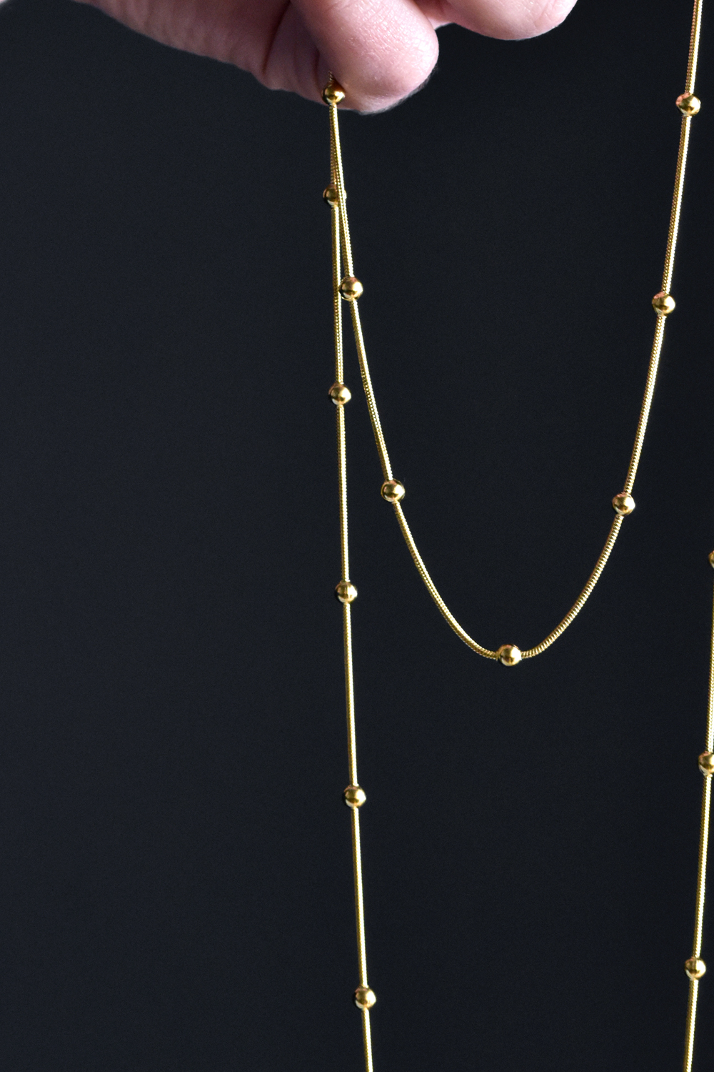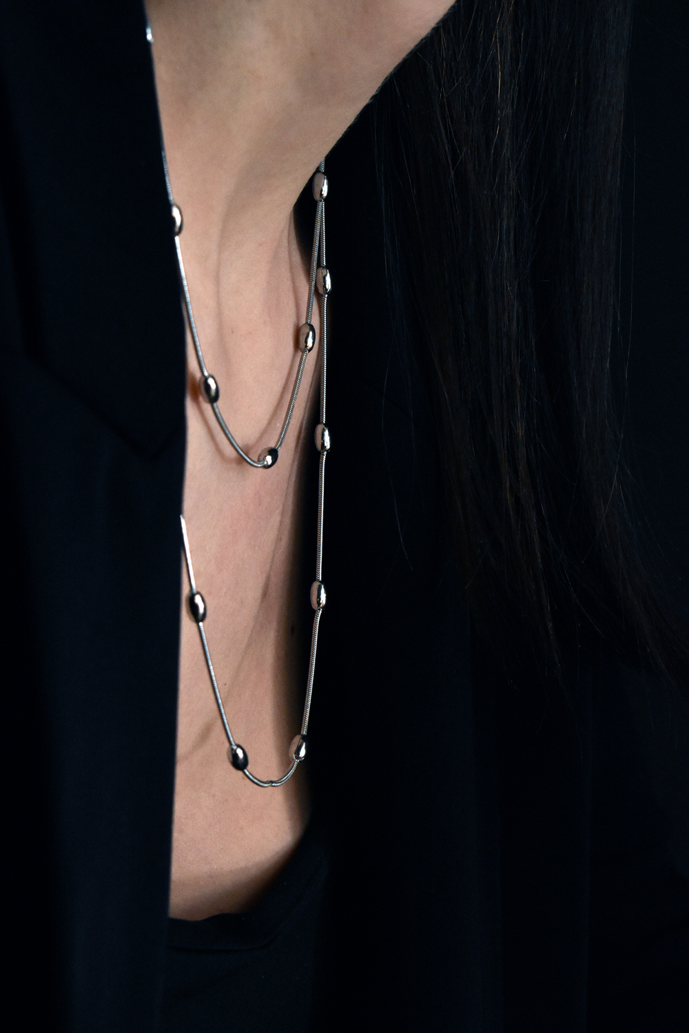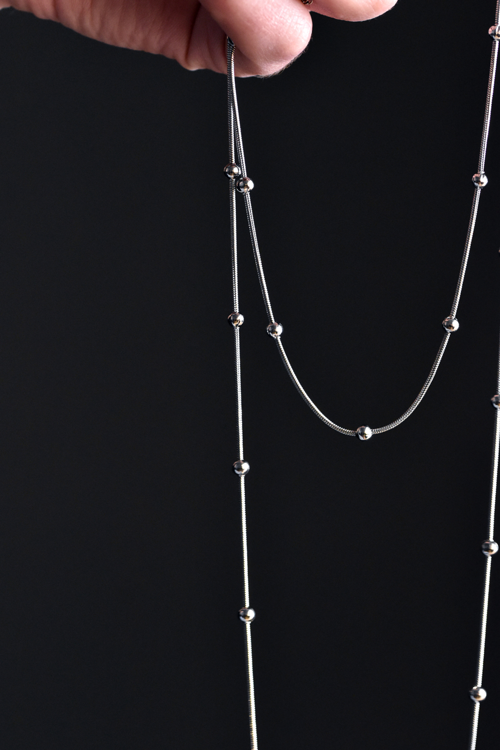 Μακρύ κολιέ φίδι με σφαίρες από ατσάλι για layering
