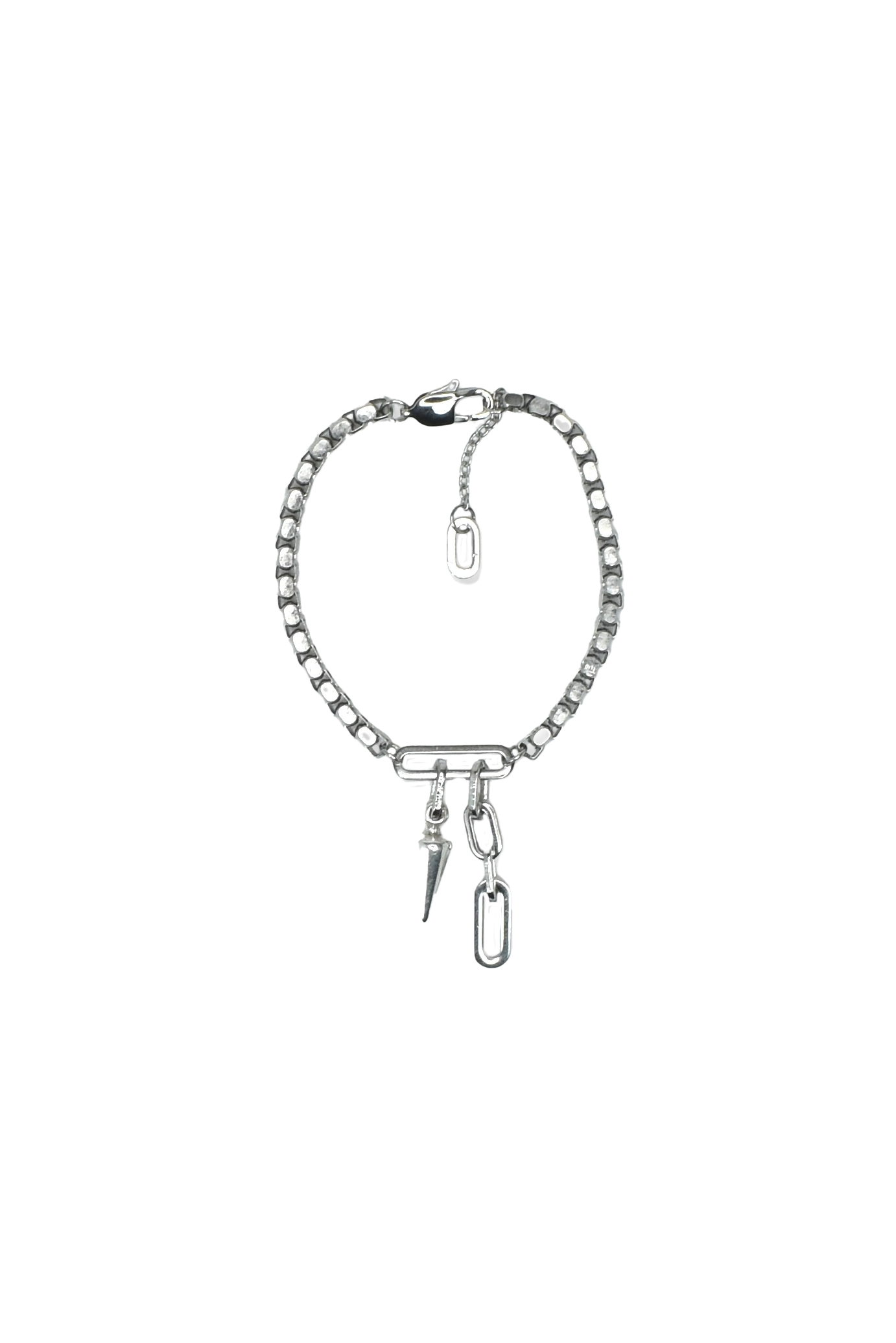 REBEL – Ασημί βραχιόλι με chunky αλυσίδα, spike και κρίκους σε rock chic ύφος