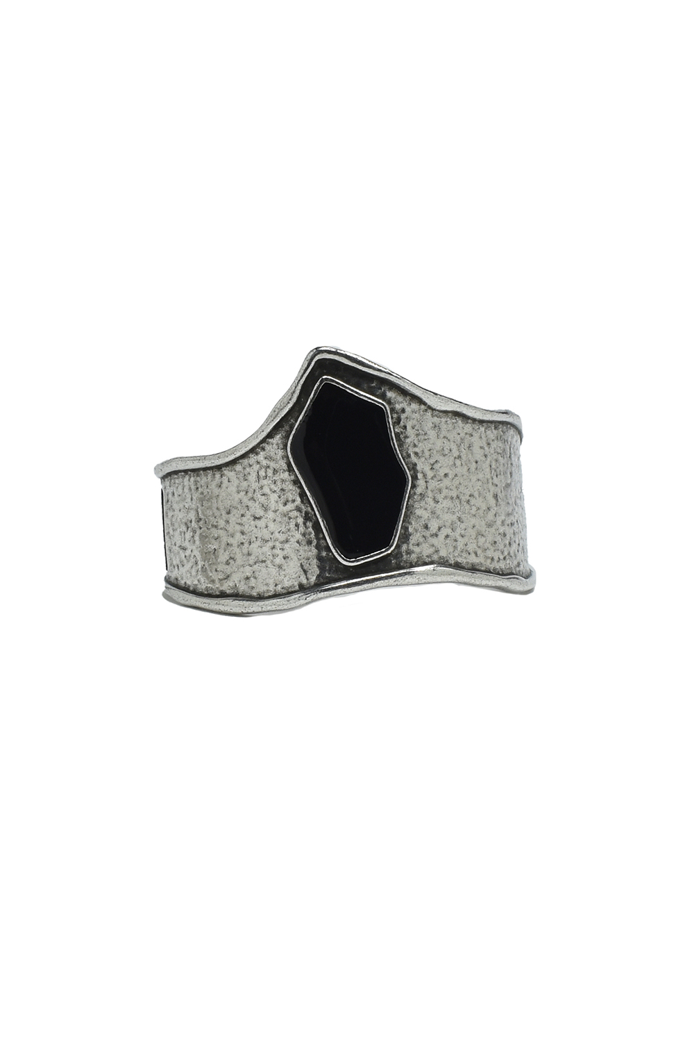 ROGUE – Ασύμμετρο ασημί βραχιόλι χειροπέδα με μαύρο σμάλτο