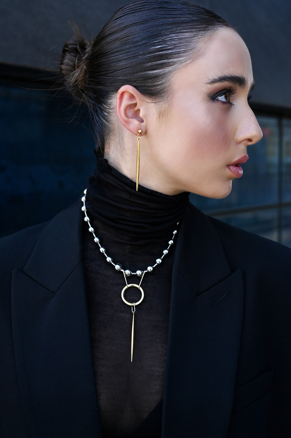 SIGN. Ένα ιδιαίτερο κολιέ σε συνδυασμό ασημί και χρυσού, με σύγχρονη, καθαρή γραμμή και γεωμετρικό ύφος.