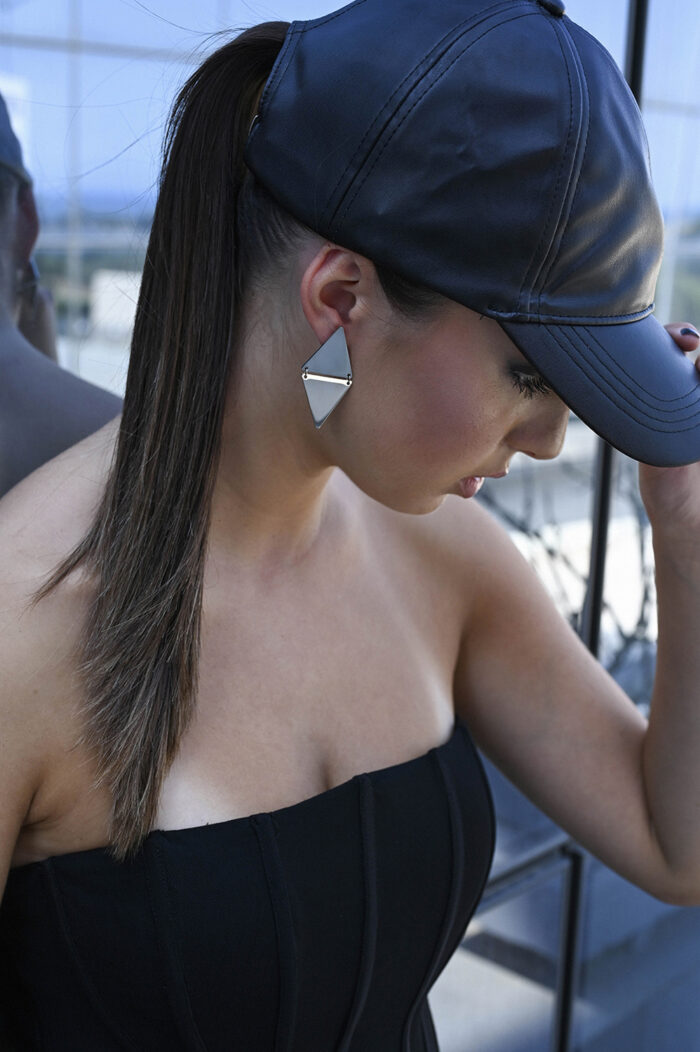VENOM – Σκουλαρίκια τρίγωνα γεωμετρικά ασημί καρφωτά ατσάλινα